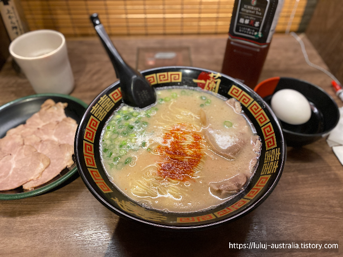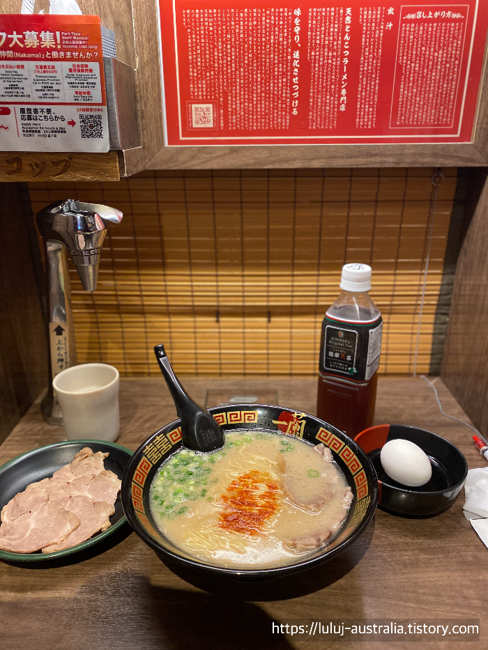 저는 라멘을 너무 좋아해서 시드니 라멘 맛집 포스팅도 많이 했었는데 이렇게 일본에 와서 가장 맛있다는 이치란 라멘을 먹어보니 아! 정말 맛있었습니다. 저는 시드니에 있는 일본 잇푸도 라멘집을 자주 가는데 잇푸도랑은 또 다르게 너무너무 맛있었어요.