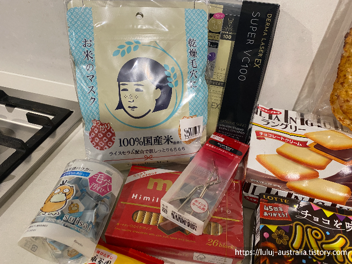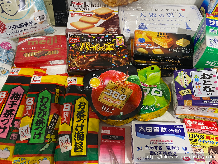 일본 오사카 돈키호테 쇼핑리스트에 항상 들어가 있는 코로로 젤리와 모리나가 베이크 크리미 치즈 과자 그리고 일본 유명 오차즈케와 후리카케도 샀습니다. 그리고 호주에서 먹고 너무 맛있어서 일본 돈키호테에서 다른 맛있길래 구매한 파이 과자도 샀어요. 흔한 메이지 초콜릿과 랑그드샤 두 종류도 샀습니다.