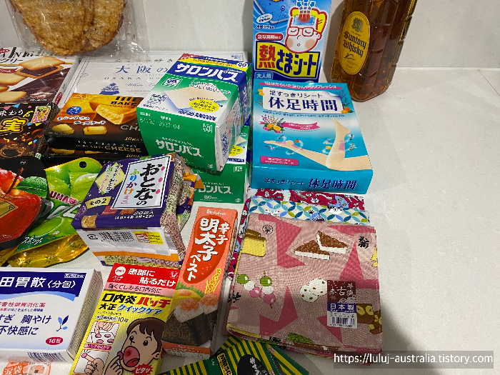 오사카 도톤보리 돈키호테에서 구매한 의약품으로는 다이쇼 구내염 패치, 오타이산 소화제와 카베진, 휴족시간, 샤론파스와 쿨파스를 샀습니다. 샤론파스와 휴족은 호주에서도 워낙 자주 사용하고 있어서 저번 발리여행 때 드럭스토어에서 쟁여놓은 게 아직 많아서 조금만 샀어요.