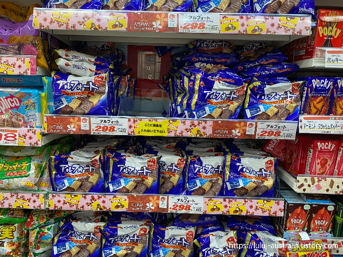 술과 같은층에도 일본 오사카 돈키호테 쇼핑리스트에 항상 들어가 있는 알포트 초콜릿 멀티팩 가격은 298엔 등 포키 죽순과자등 인기 제품들이 2층에도 모여있습니다.